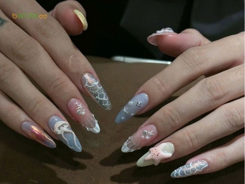 Hình ảnh các mẫu nail hiệu ứng vỏ sò