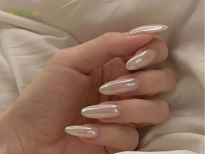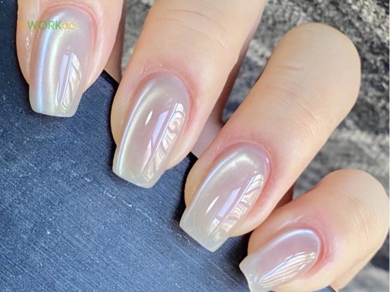 Sử dụng bột nhũ mịn kết hợp top coat dày để tạo độ gồ ghề nhẹ, mang lại hiệu ứng lấp lánh như vỏ ngọc trai – cực kỳ phù hợp với các cô nàng yêu nail phong cách Hàn Quốc, mang đến vẻ đẹp nữ tính, thanh lịch và sang trọng.