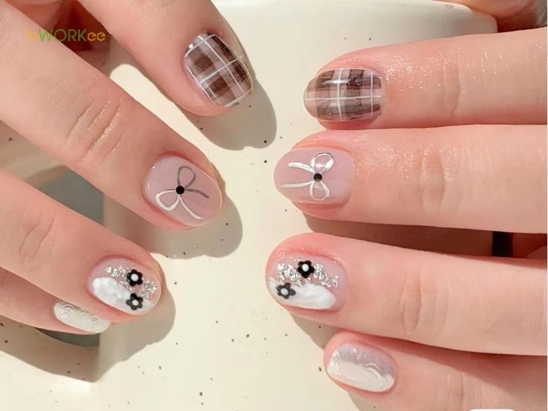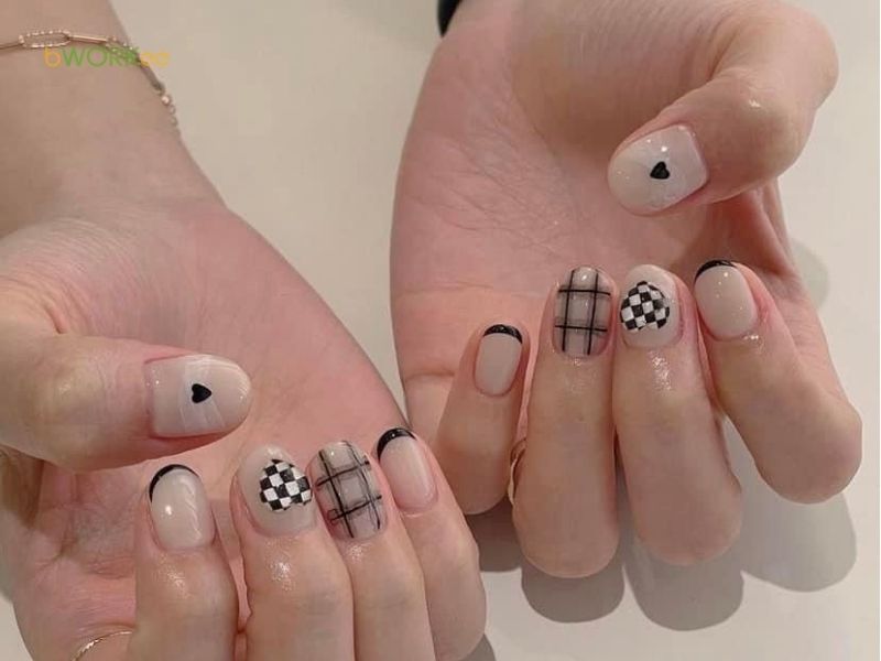 Hình ảnh các mẫu nail hàn quốc kẻ caro