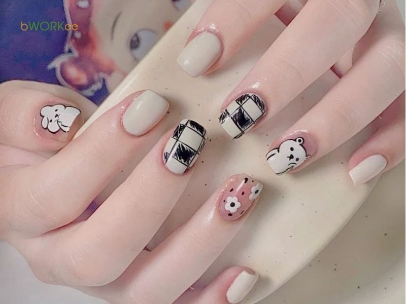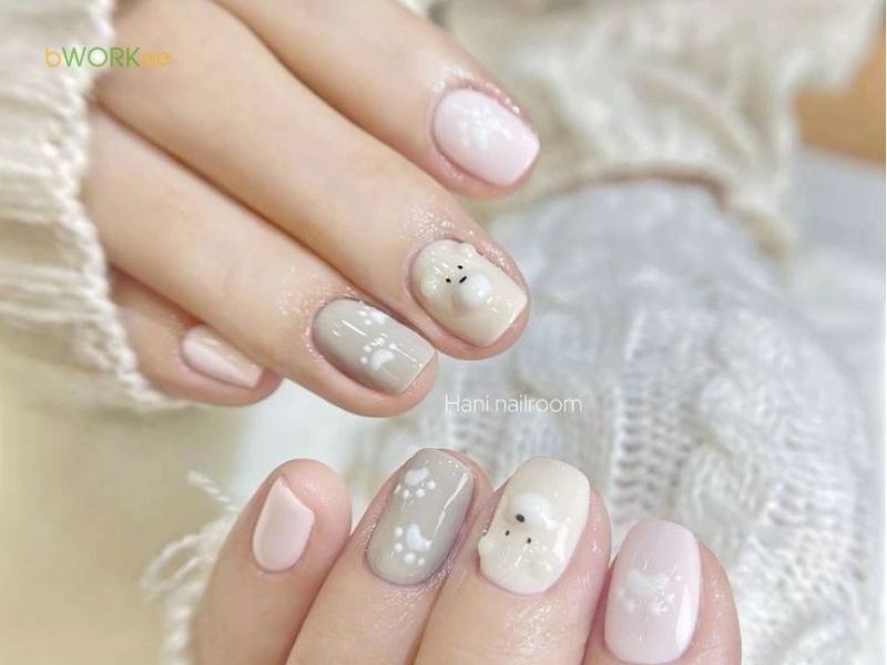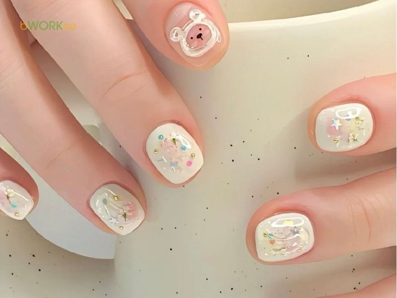 Không thể thiếu những mẫu nail Hàn Quốc dễ thương dành cho học sinh, sinh viên. Các thiết kế nail Hàn Quốc phong cách cute sử dụng màu pastel nhẹ, họa tiết trái tim, hoa nhỏ hoặc nhân vật hoạt hình mini giúp đôi tay thêm tươi tắn và trẻ trung.