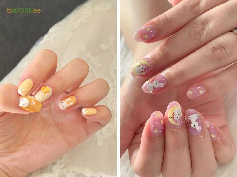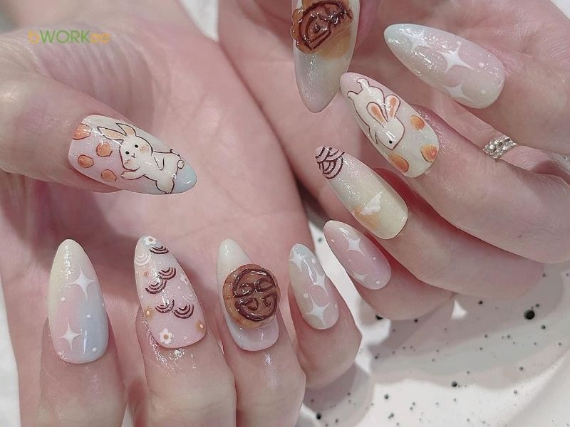 Mẫu nail chị Hằng, chú Cuội và thỏ ngọc