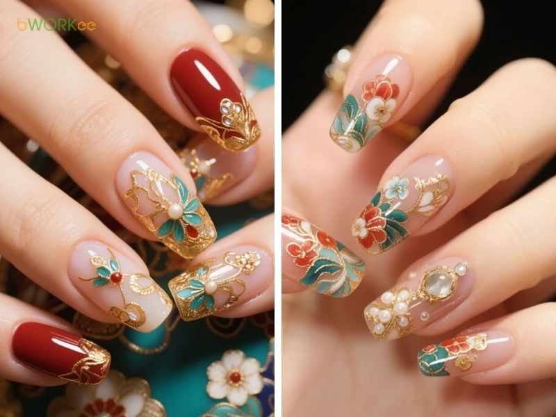 Đây là lựa chọn hoàn hảo cho những quý cô yêu thích vẻ đẹp Nail Trung Thu Cổ Trang.