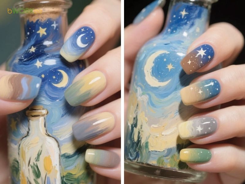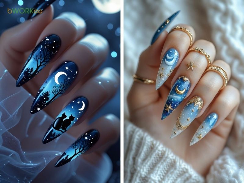 Mẫu nail mặt trăng và sao đêm huyền ảo