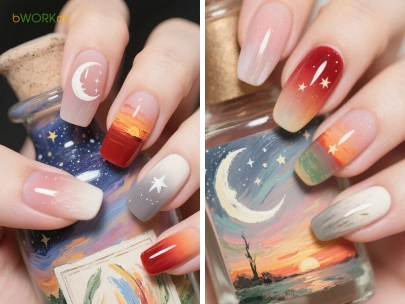 Hình ảnh các mẫu nail mặt trăng và sao đêm huyền ảo