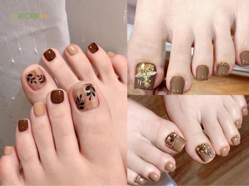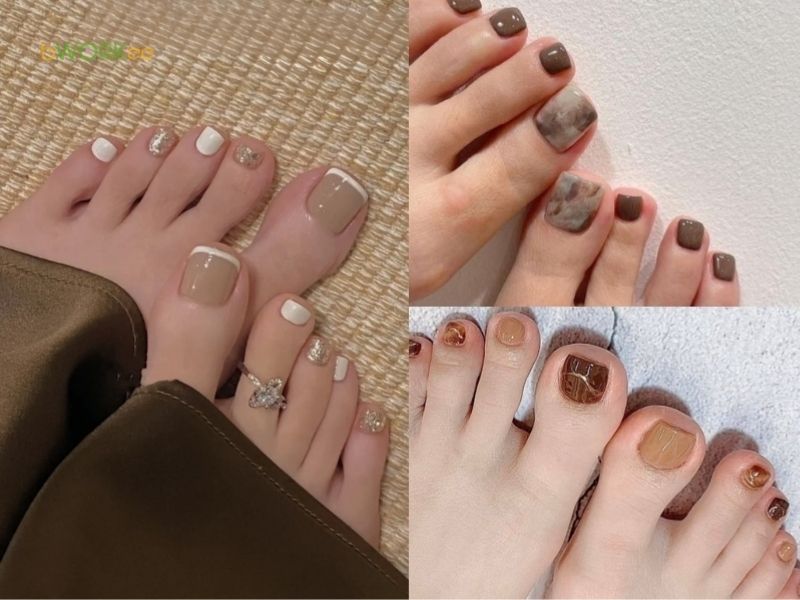 Hình ảnh các mẫu nail chân trung thu màu nâu đất