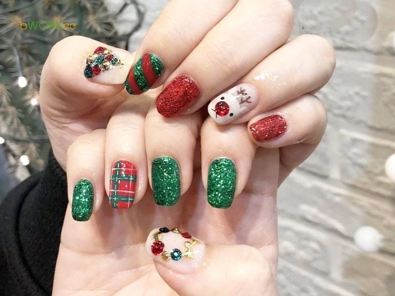 Nail Noel màu đỏ / xanh lá / trắng